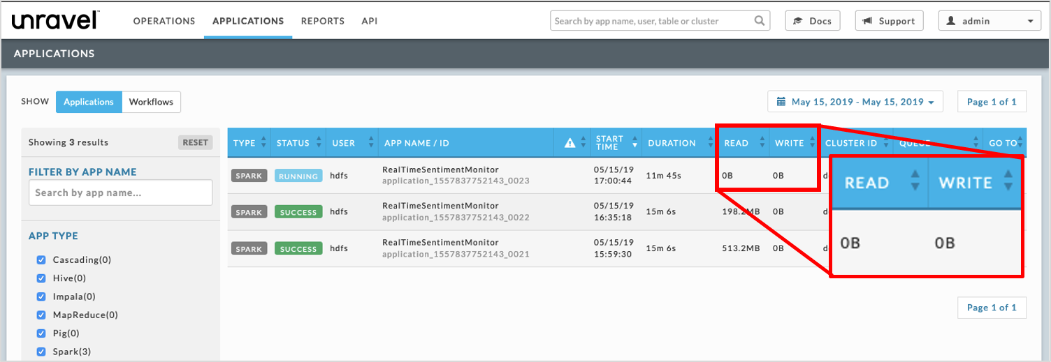 Below are two scenarios illustrating how you can use Unravel’s APMs to inspect, understand, correlate, and finally debug issues around a Spark streaming app consuming a Kafka topic. They demonstrate how Unravel’s APMs can help you perform an end-to-end analysis of the data pipelines and its applications. In turn, this wealth of information helps you effectively and efficiently debug and resolve issues that otherwise would require more time and effort.